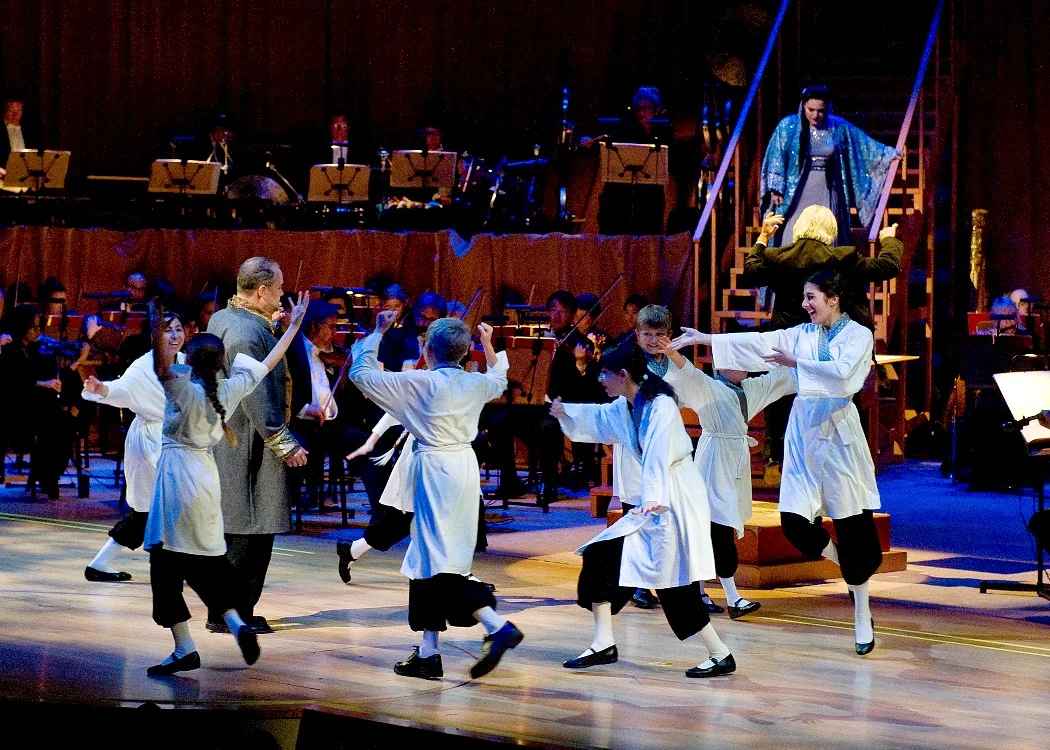 The very capable Pacific Chorale sang the all-important role of the ‘People of Peking’, shouting praise of glory to the Emperor or humming softly at the executions of Turandot’s ill-fated suitors. Finally, the Southern California Children’s Chorus sang the Chinese “Jasmine Flower song” (again harmonized in the western fashion) with pure angelic voices, looking totally adorable in their white robes and carrying white hanging lanterns.