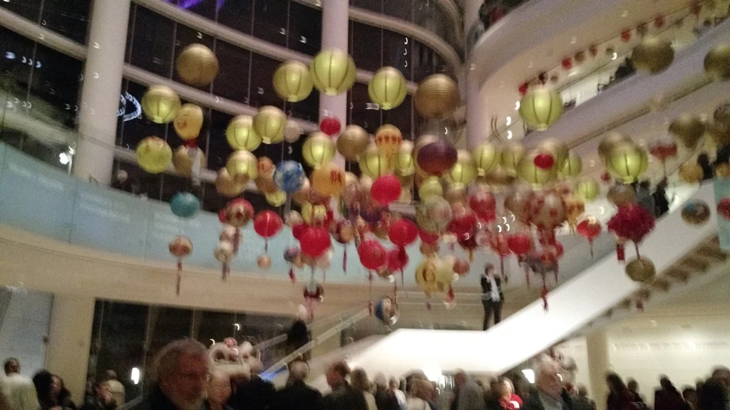 Partly in celebration of the Chinese New Year, the Pacific Symphony went all out in the chinoiserie department by decking the concert hall lobby with colorful lanterns and lion dance puppets. The festive atmosphere extended to inside the auditorium where, to the surprise and delight of the audience, bursts of confetti rained down during the opera’s ‘Love Triumphant’ finale.